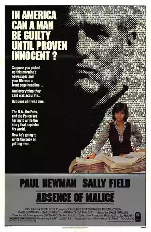 Diritto di cronaca (Absence of Malice) di Sydney Pollack del 1981. Con Paul Newman, Sally Field, Bob Balaban, Melinda Dillon, Luther Adler, Barry Primus, Josef Sommer, Wilford Brimley. (116 min. ca.)